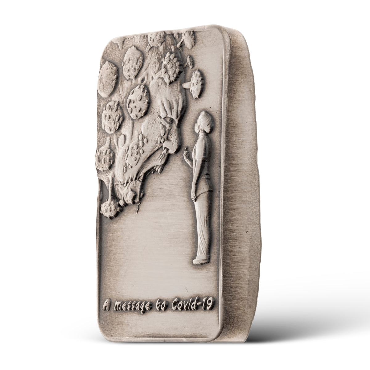 Produced by Argentia Precious Metals using .9999 fine LBMA silver. A fun and giftable investment bar for these unusual times. Limited edition of 1000 bars sold in Antique finish and 1000 bars in Matte finish.